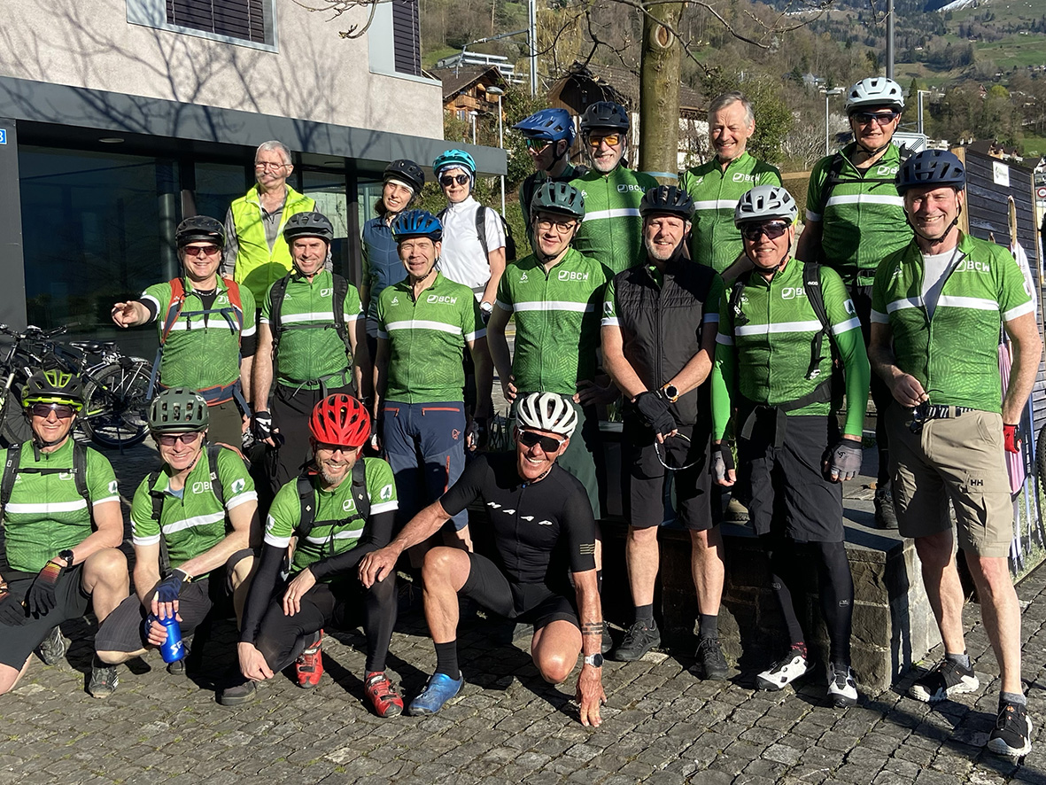 Das Wetter war schön und frisch – und ja, es kamen 20 aktive Velofreunde zu diesem Jubiläumsstart. Präsident Henrik Steffensen hielt eine kurze Begrüssungsrede mit einigen allgemeinen Informationen für das Jahr und einer Einweisung in die neuen Vorschriften für das Biken in den Bergen.