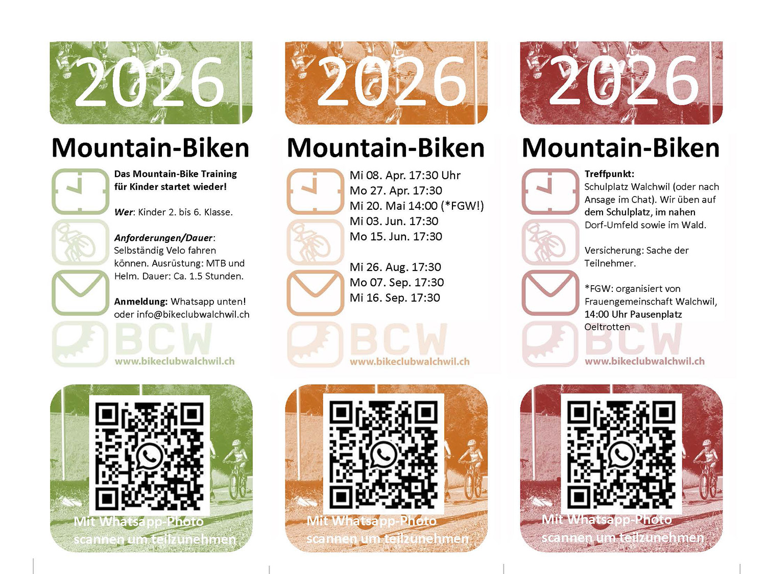 Kontakt: Daniel Sutter – 079 305 46 30, info@bikeclubwalchwil.ch